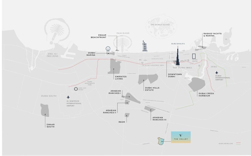 موقعیت ایده‌آل در نزدیکی فرودگاه بین‌المللی آل مکتوم و مجاورت با اکسپو سیتی دبی